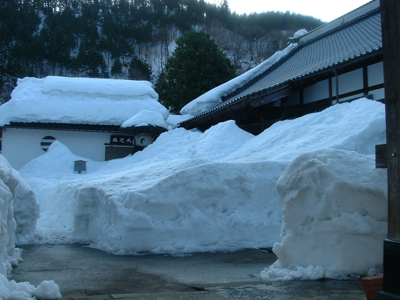 H17~18の豪雪では、信越地方で4メートルを超える積雪に見舞われたところもあったとか?信越地方ほどではないのですが、法雲寺がある但馬・村岡は関西では有数の豪雪地帯。2メートルを越す大雪に悩まされ・苦しめられました。