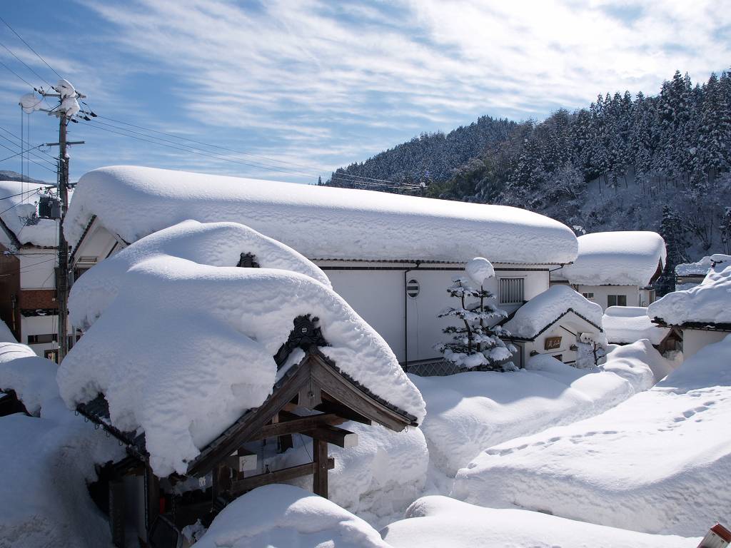 この地方の古い家は軒先を長く取っているところも多くあり、軒先が落ちてくれない軒先の雪の重みに耐え切れず、軒先が折れてしまった家も数多くありました。