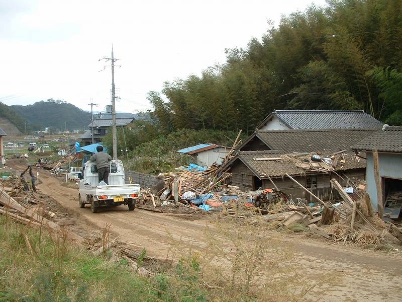 平成16(2004)年10月23日教区内関係者・ご理解者各位進美寺(日高町赤崎地区)檀家の被害状況ご報告先のFAXでもご報告の通り、進美寺檀家様の台風被害は予想以上ということで、現地に出向いてまいりました。